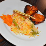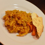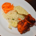 インドレストラン バーワルチー - ランチビュッフェ(1,000円)の『ベジタブルライス、チキンティッカ、オニオンピクルス、パパド』2019年1月